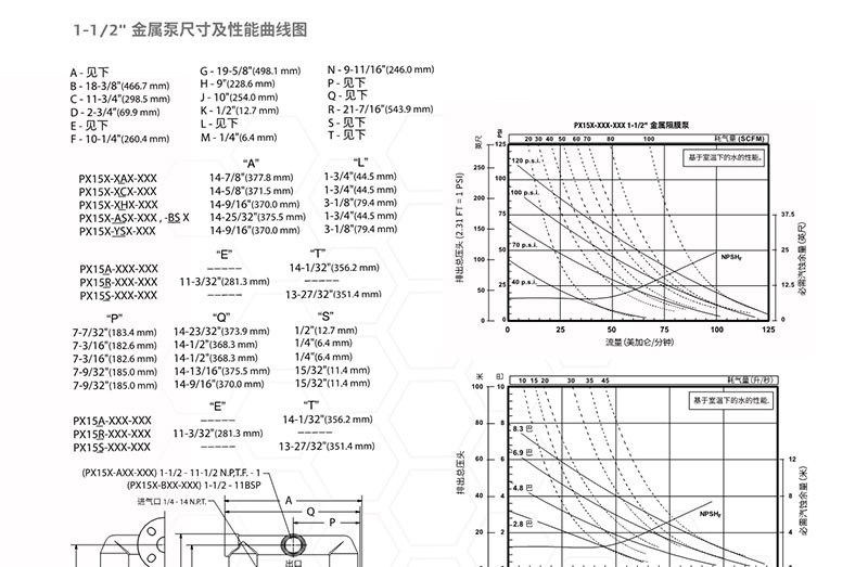 產品型號說明:PX15X-XXX-XXX-B-XX尺寸及流量曲線圖:EXP氣動隔膜泵金屬型泵型號大全:英格索蘭氣動隔膜泵適用場合及優點: 1、適用于危險物料的輸···