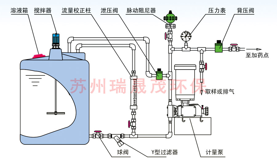 以計量泵為主的系統加藥設備中的配套或者輔助設備。可以有效提高計量泵的計量精度,改善計量泵的工作環境,從而延長計量泵的使用壽命。常規配置如下:安全閥一泄壓閥,保護···