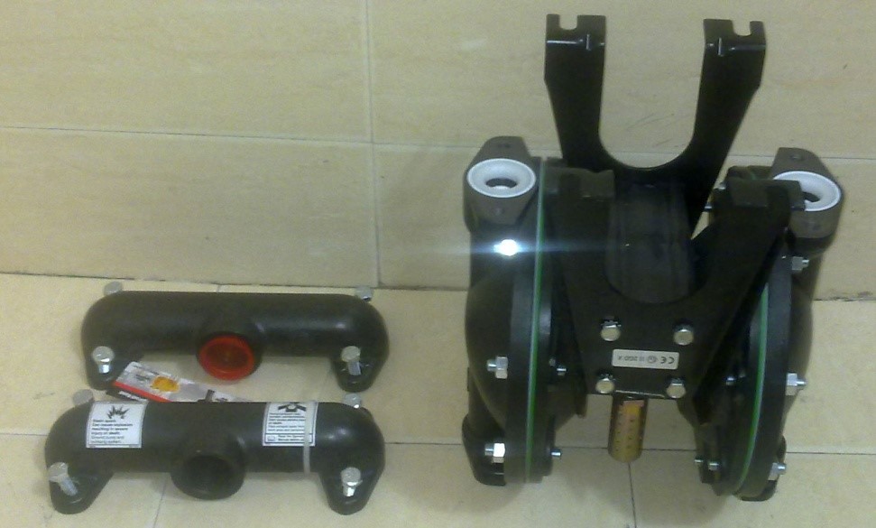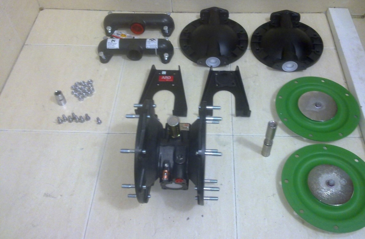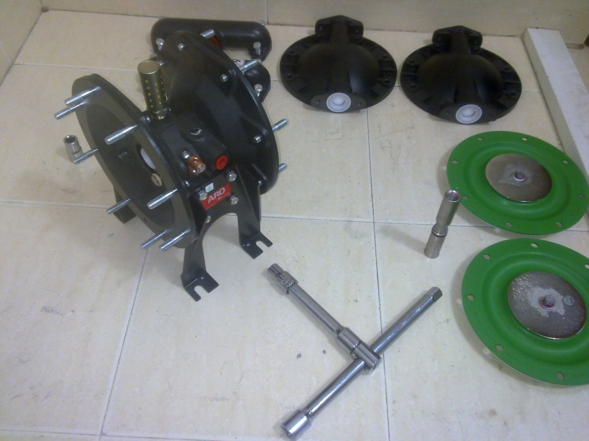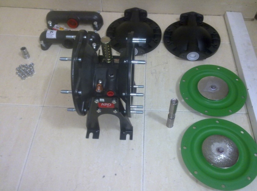 隔膜壓板松動-產品通過排氣孔泄漏 | 清潔泵的整個中間體部件,檢查隔膜是否損壞,并重新緊固隔膜壓板 | |