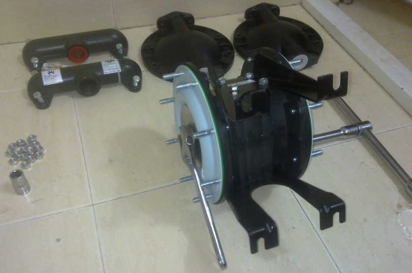 隔膜繞中央孔或螺栓孔伸長 | 檢查入口壓力或空氣壓力是否過高(按照扭矩建議緊固螺絲) | |