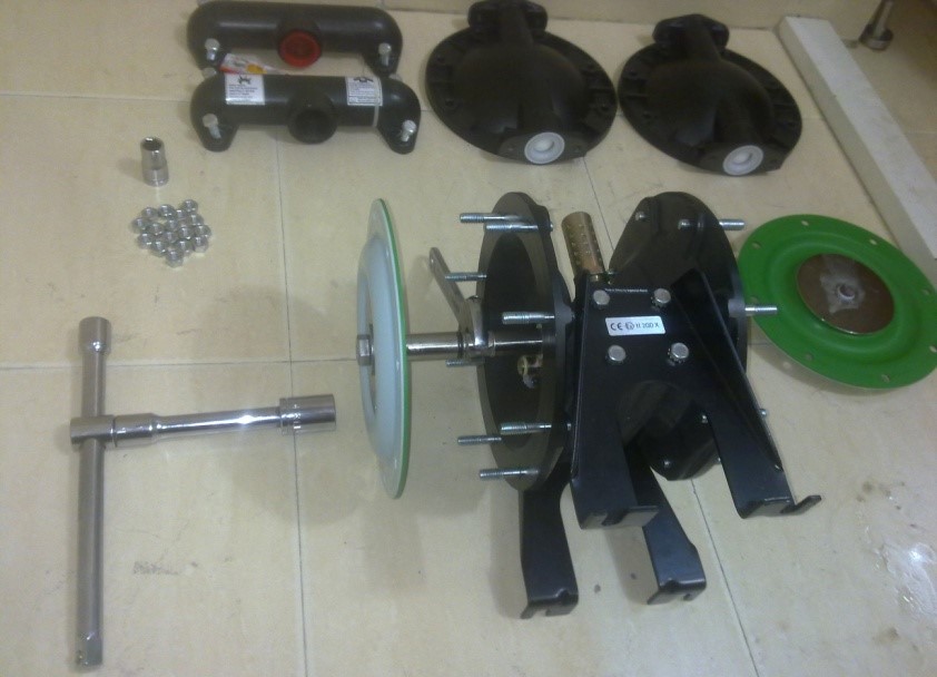 4. 隔膜泵工作,但無排力 | 下方球座破損 | 更換下方球座 |